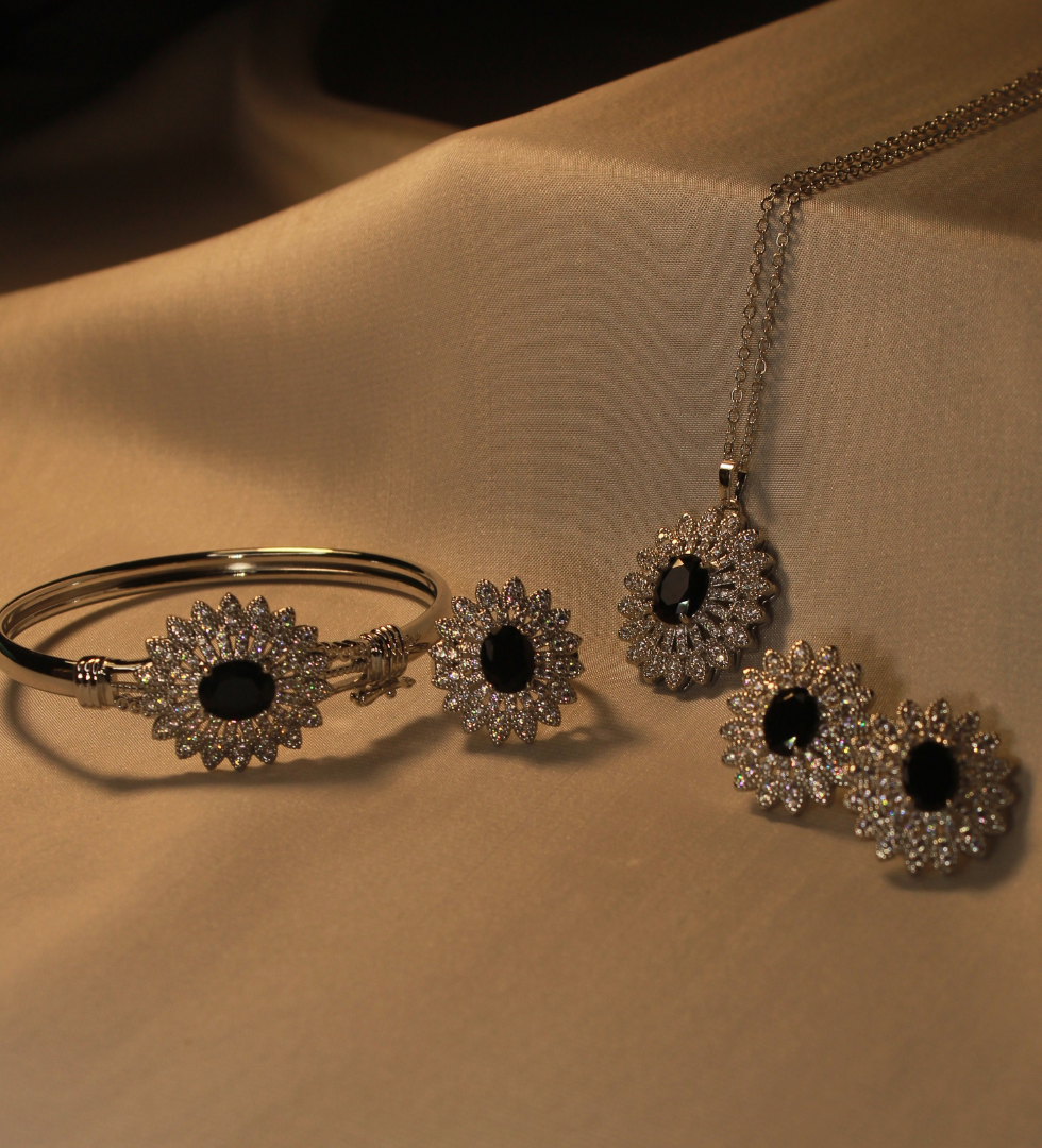 𝐒𝐢𝐥𝐯𝐞𝐫 𝐚𝐧𝐝 𝐠𝐨𝐥𝐝𝐞𝐧 𝐣𝐞𝐰𝐞𝐥𝐫𝐲 𝐬𝐞𝐭 𝐰𝐢𝐭𝐡 𝐚 𝐥𝐚𝐫𝐠𝐞 𝐜𝐞𝐧𝐭𝐫𝐚𝐥 𝐬𝐭𝐨𝐧𝐞 𝐬𝐮𝐫𝐫𝐨𝐮𝐧𝐝𝐞𝐝 𝐛𝐲 𝐬𝐦𝐚𝐥𝐥𝐞𝐫 𝐬𝐭𝐨𝐧𝐞𝐬.